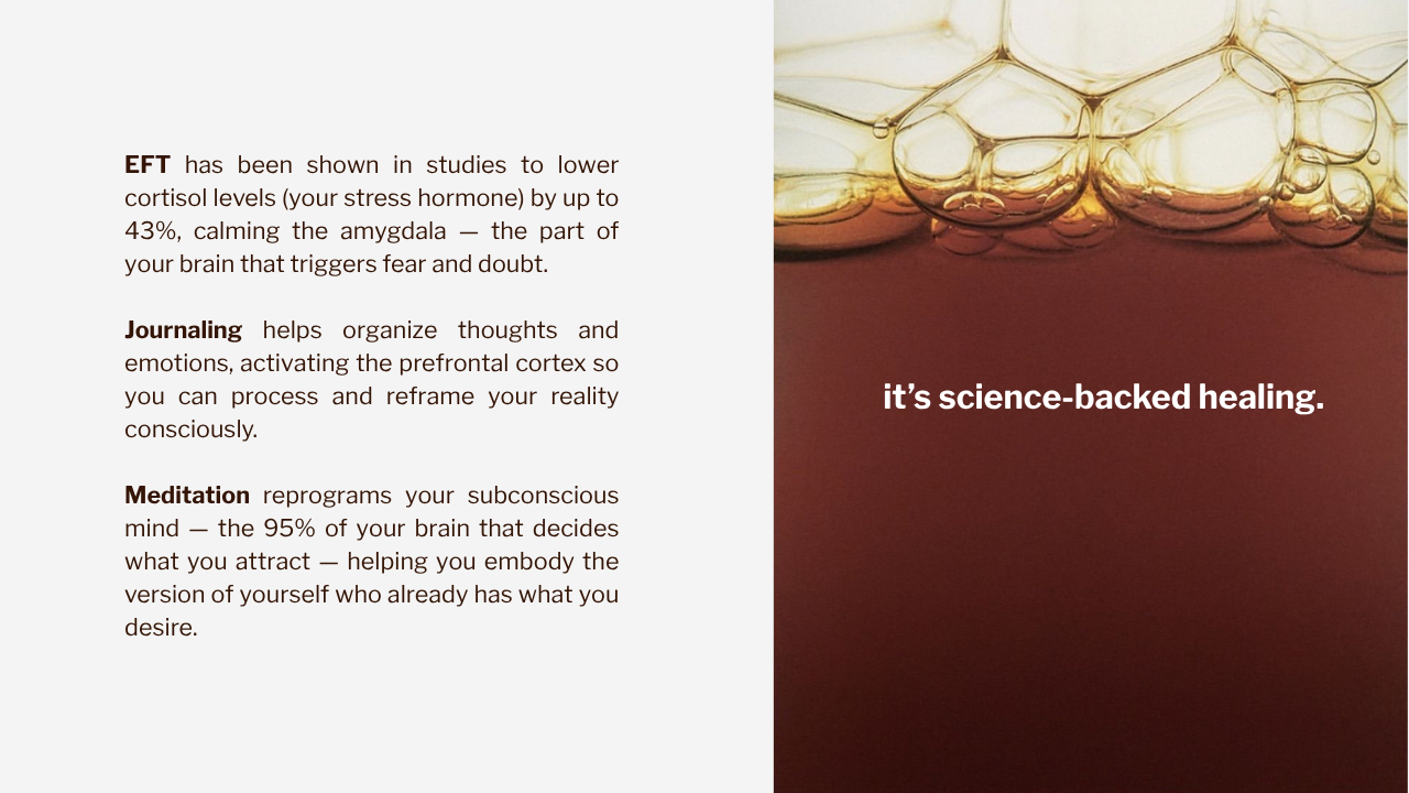 This 1-hour manifestation ritual combines EFT tapping, journaling, and meditation to help you: